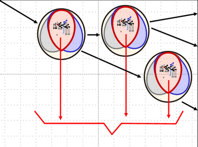 Вытаскиваем задачи (сейчас я не буду говорить, по каким правилам). Но суть сводится к тому, что эта задача решается типовым решением. Получается промежуточный результат. Получается какое-то устраивающее нас решение, но есть какие-то задачи, которые это решение не решает. Эта задача (назовем ее номер 2) тоже решается типовым способом, и опять получается промежуточное решение (по той же причине, что и предыдущий промежуточный результат). А эта задача никак не решается. Тогда мы делим ее опять на какие-то составляющие из которых два как-то решаются, а третий опять не решается.